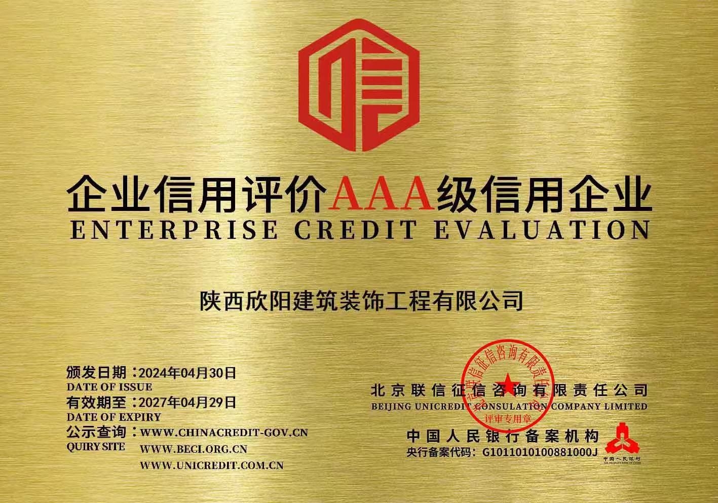 喜訊!我公司榮獲企業(yè)信用評(píng)價(jià)AAA級(jí)信用企業(yè)等榮譽(yù)認(rèn)證 近日,我公司榮獲中國人民銀行備案機(jī)構(gòu)-北京聯(lián)信征信咨詢有限公司頒發(fā)的企業(yè)信用評(píng)價(jià)AAA級(jí)信用企...